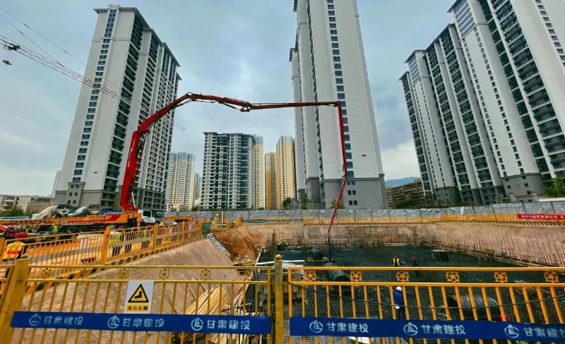 【“三抓三促”在行動(dòng)】甘肅建投地產(chǎn)·金悅府項(xiàng)目四期 9#樓進(jìn)行筏板砼澆筑