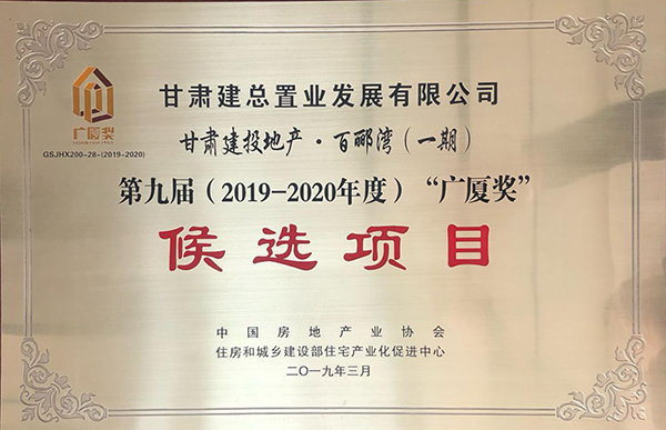 4月11日,在中國房地產(chǎn)協(xié)會各地房協(xié)會長、秘書長工作會議上,“甘肅建投地產(chǎn)?百酈灣(一期)”項(xiàng)目入選第九屆(2019—2020年度)“廣廈獎”候選項(xiàng)目。