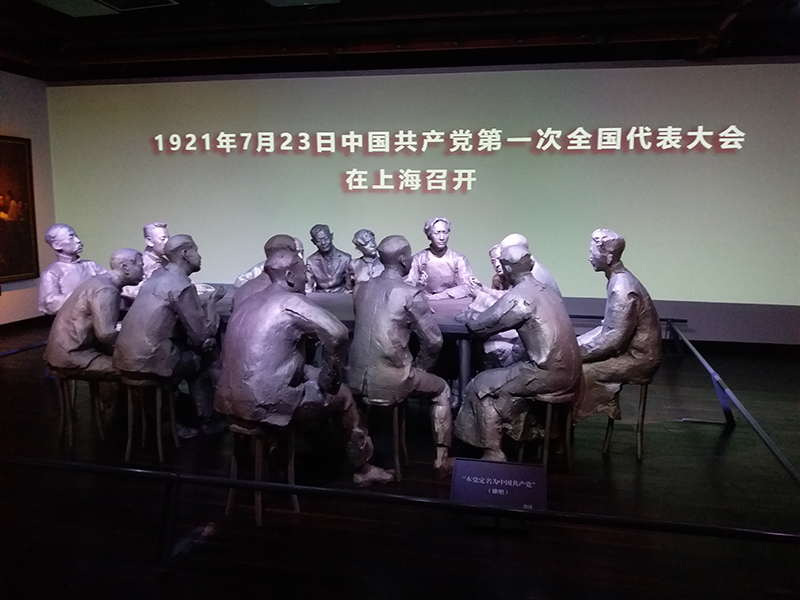 在紀(jì)念館大廳內(nèi),面對鮮紅的黨旗,全體黨員莊嚴(yán)宣誓,重溫入黨誓詞,宣誓了為共產(chǎn)主義事業(yè)奮斗終身的堅(jiān)定信念。在參觀過程中,大家駐足于栩栩如生的蠟像前,“他們圍坐在一張長餐桌四周,正聚精會神聆聽毛澤東同志講話”,仿佛再現(xiàn)中國共產(chǎn)黨在這里誕生的歷史性一刻,令一行人感觸頗深。
