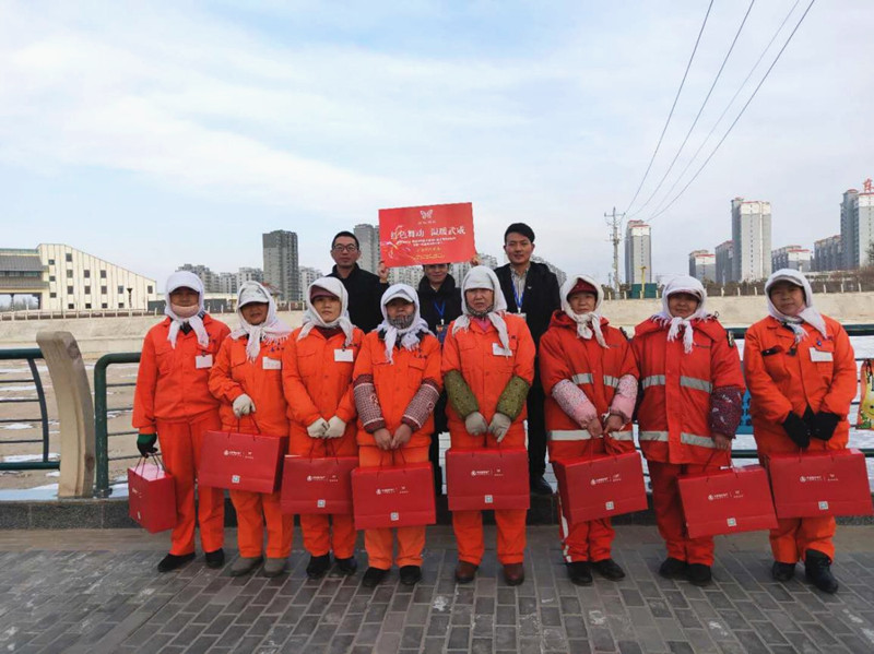 當(dāng)日,武威分公司團(tuán)隊(duì)為寒冬里堅(jiān)守在崗位的環(huán)衛(wèi)工人、城管、交警們送上圍巾、暖寶寶、保溫杯等一份份暖心禮物,讓這些城市的守護(hù)者們感受到來(lái)自大家庭的溫暖。